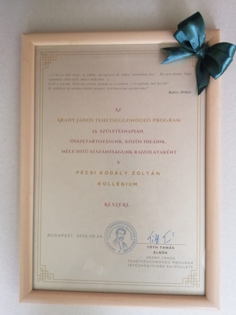 2025. szeptember 24-én, Budapesten a Károlyi-palotában rendezték az Arany János Tehetséggondozó Program fennállásának 25 éves jubileumi ünnepségét.