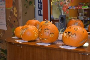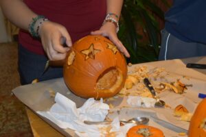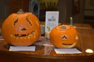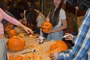 Az aulában sütikkel és teával, jóslással, Tök küldivel, Tök kutatóval, Tök kvízzel és Tök faragó versennyel találkozhattatok. Megválasztotta a kollégium szelleme és vámpírja a legszebben kifaragott Tököt.