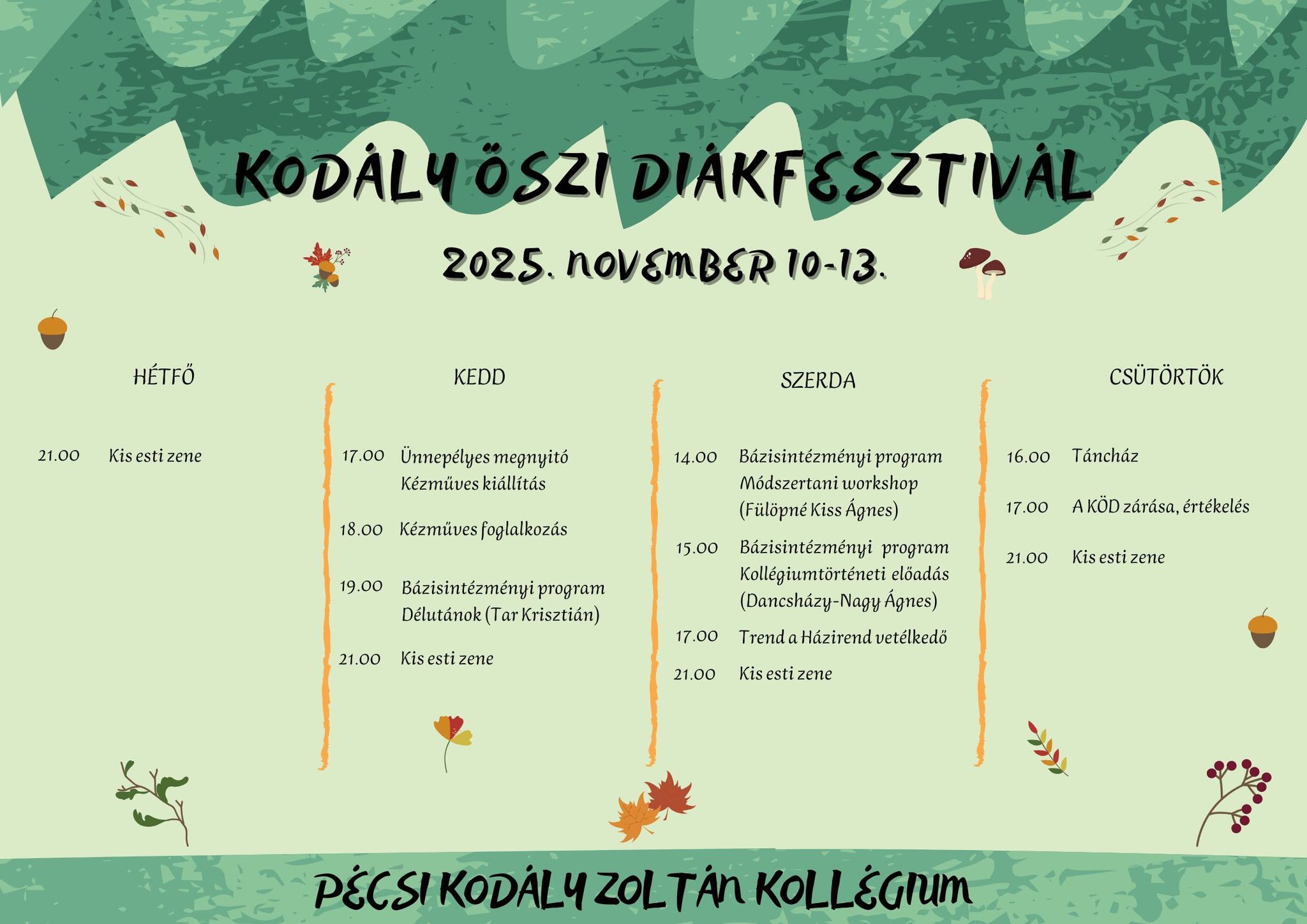 Kodály Őszi Diákfesztivál 2025. november 10-13-ig