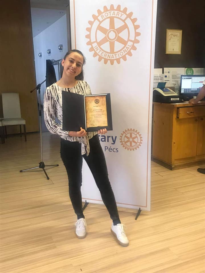 Kollégiumunk diákja Gyuradinovics Kinga (11 csoport) a Leőwey Klára Gimnázium tanulója (10.A) elnyerte a Rotary Díjat! Szívből gratulálunk Kinga!