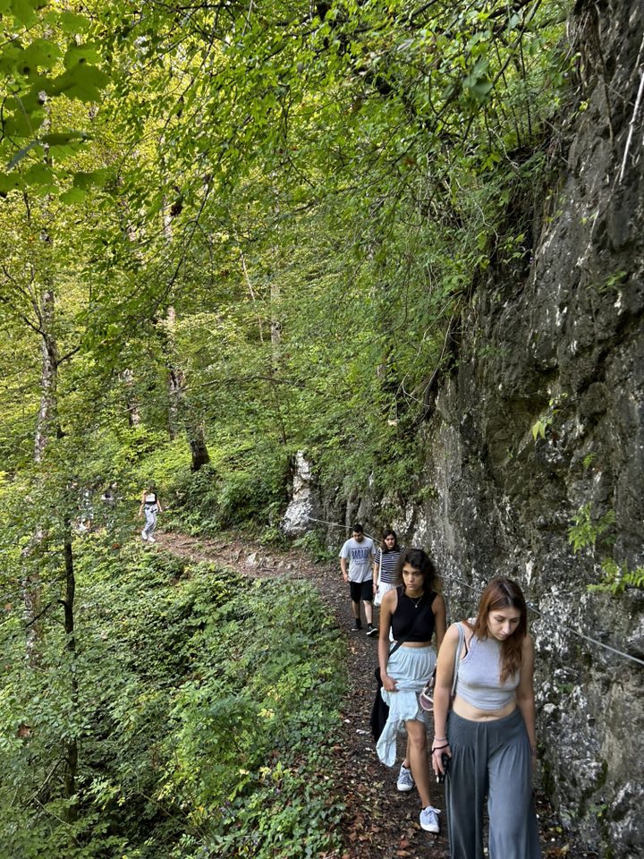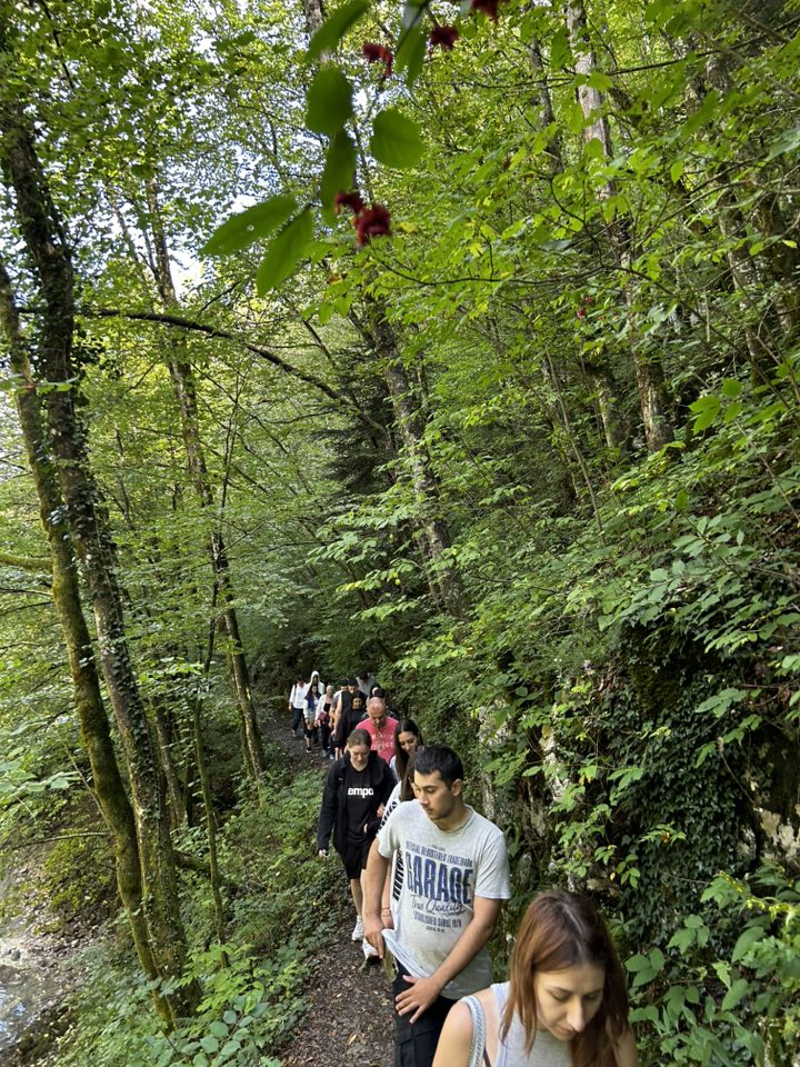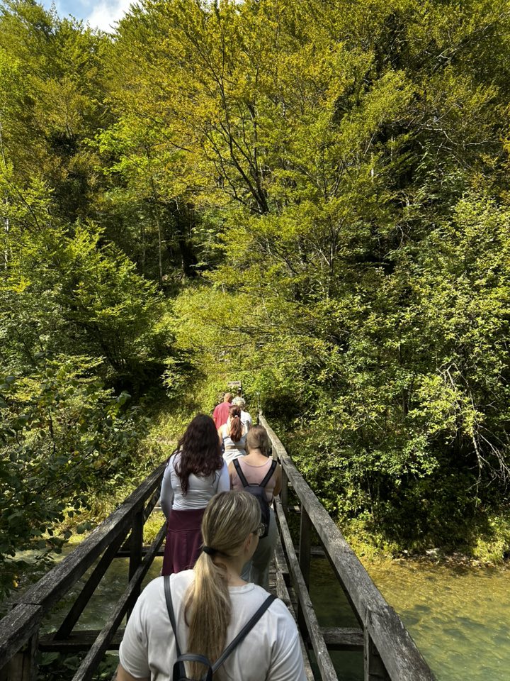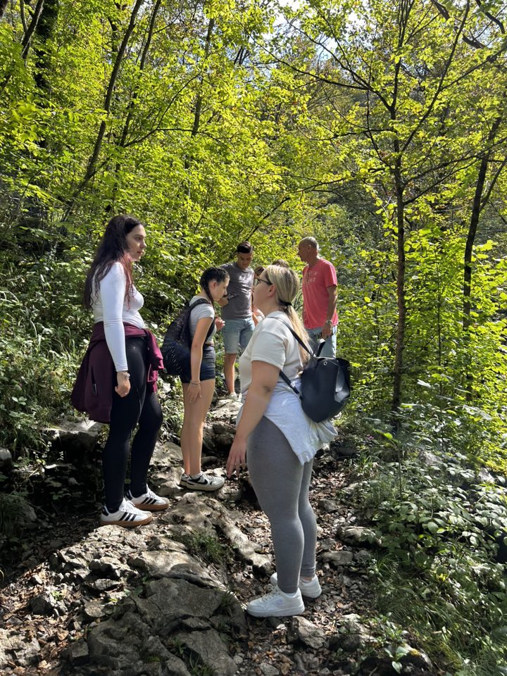 Pár óra utazás után megérkeztünk első úti célunkhoz, a Vrbovsko kisváros mellett található Kamačnik-kanyonhoz. A biztonsági előírásoknak megfelelően mindenkin zárt sportcipő vagy túrabakancs volt. Megváltottuk a belépőket, és elindultunk a látogatóknak kialakított túraútvonalon. A talaj a korábbi esőzéstől valamelyest nedves volt, itt-ott csúszós, de ez egyáltalán nem akadályozott bennünket. A terep nem volt nehéz, séta közben folyamatosan lehetett csodálni, fotózni a gyönyörű zöldet a Kamačnik-folyó mentén. Kellemes, napos időnk volt. Ahogy haladtunk a 3 km-es szakaszon, egyre párásabb lett a levegő. A kék-zöld sok árnyalatát mutató folyóban több ízben halakat pillantottunk meg, egy horgászt is, aki speciális ruhában a folyó közepén állva igyekezett minél több zsákmányt szerezni. Pisztrángban különösen gazdag a folyó, mely a közeli, hangulatos étterem ételkínálatában is megtalálható. A jól kiépített túraútvonalon volt, hogy fahídon sétáltunk át, volt, hogy fémhuzalba kapaszkodva haladtunk biztonsággal előre. Az autópálya hídja a szurdok felett helyezkedik el. Ennél a szakasznál könnyebb lett a terep. A bedőlt fák és a felszálló pára a kisebb tavacskává duzzasztott folyóban érdekes, misztikus látványt nyújtottak. Diákjaim nagyon különleges fotókat készítettek. Rengeteg bükkfát, cikláment, látványos vízlépcsőket láthattunk. A tanösvény mellett több nyelvű táblák ismertetik a gazdag növény- és állatvilágot. A 3 km-es szakasz végén piknikező horvát fiatalokkal találkoztunk, akiket megkértünk, hogy fotózzák le csoportunkat. Kicsit megpihentünk, élveztük a kellemes, hűs levegőt, majd elindultunk vissza a kanyon bejáratához. Többen is jelezték, milyen jó lenne legalább egy éjszakára letáborozni ezen a különleges helyszínen. Mogyorósi Tamástól számtalan érdekességet tudtunk meg túránk közben. Páran megfogalmazták, hogy ha a családdal a horvát tengerpartra utaznak, ellátogatnak még ide. Megköszöntem kollégámnak, hogy erre a szép helyre elhozta a csoportomat. Úgy gondolom, hogy én sem utoljára jártam ezen a varázslatos helyen.