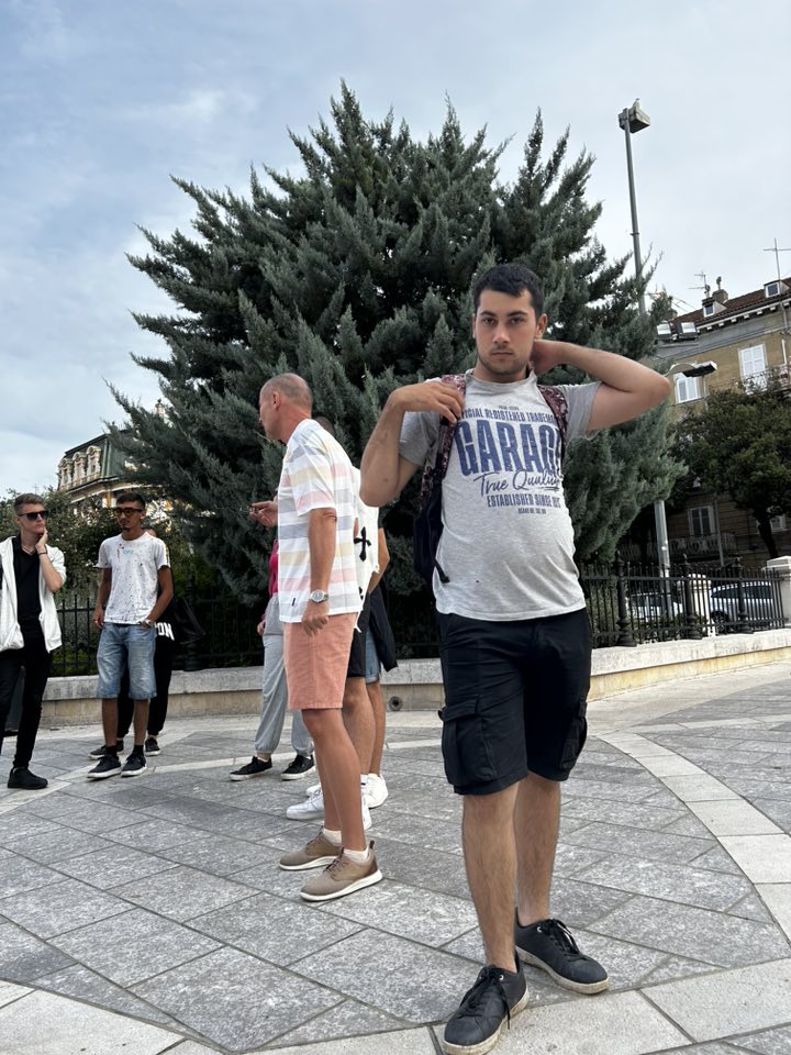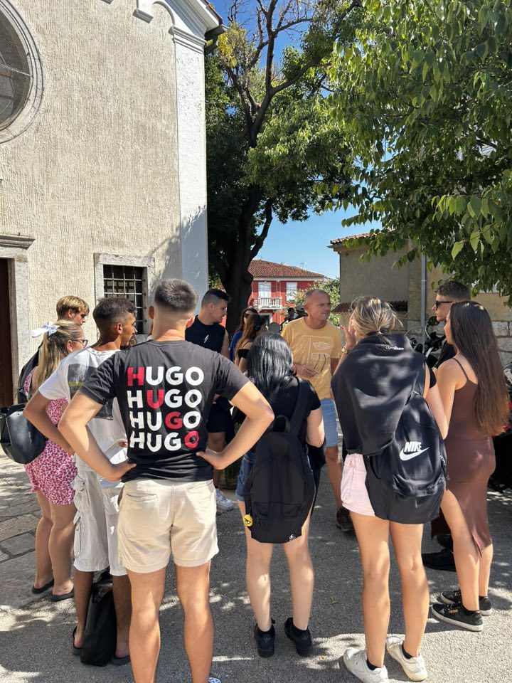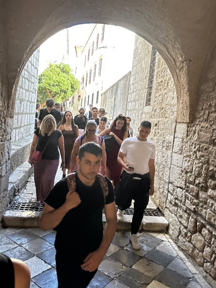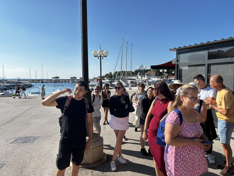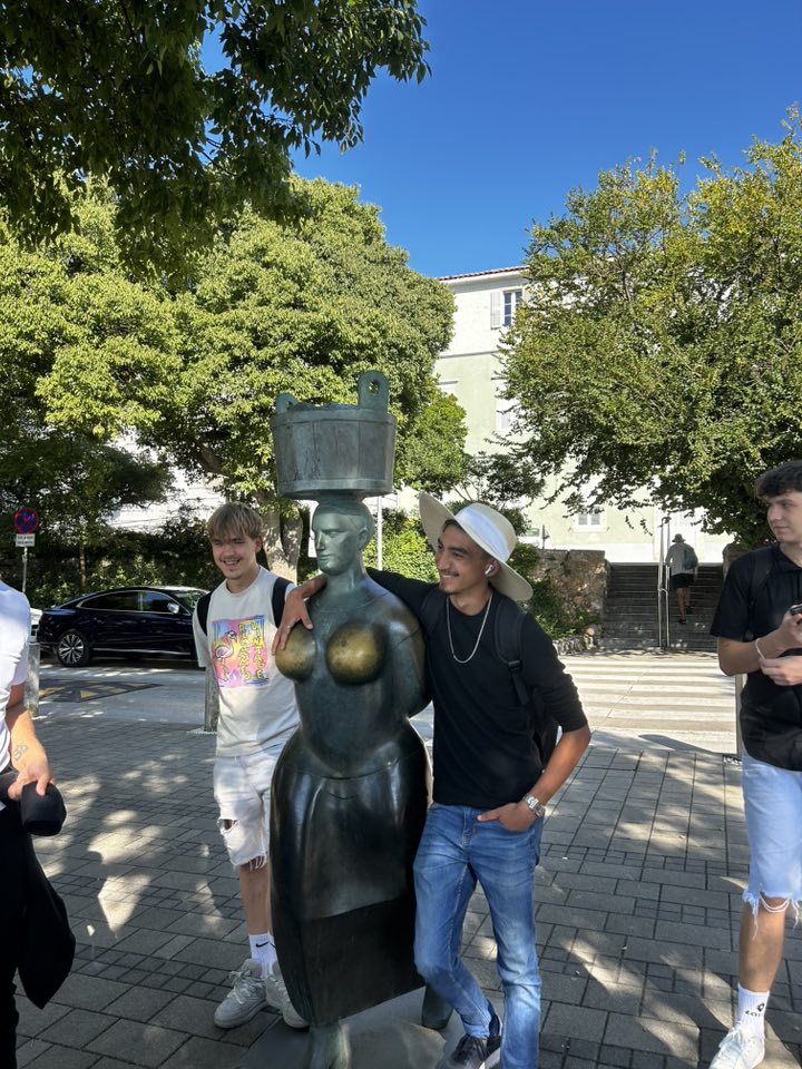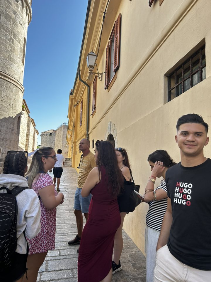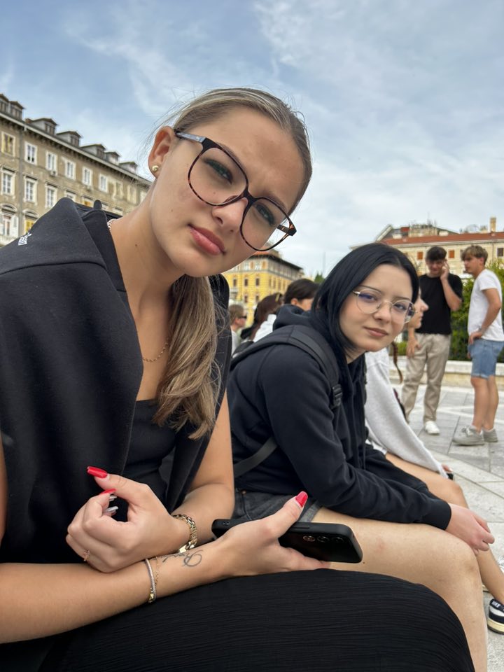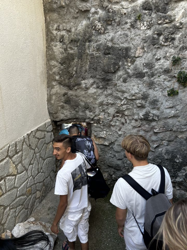 A csoport egy része a második éjszakázás miatt igencsak fáradt volt, ennek ellenére izgalommal várták, hogy megismerhessük Fiumét. Jó kis városi séta után elérkeztünk az alagúthoz, ahova be szerettünk volna jutni, azonban a helyszínen kiderült, hogy kizárólag kártyás fizetés lehetséges, nálunk azonban csak készpénz volt. Kollégám kiváló horvát nyelvtudásával próbálta elérni, hogy hadd mehessünk be az euróinkkal az alagútba, de nem lehetett. Sajnos ezt a programpontot így törölni kellett. A kihagyott program miatt lett a gyerekeknek egy kis szabadidejük, amit mindig nagyon szeretnek. Azonban mi módjával osztogatjuk ezt a külföldi városokban, nehogy eltévedjenek véletlenül. A megbeszélt időpontra mindenki visszaért, és folytattuk a városi sétát. Több száz lépcsőn vezetett fel utunk a középkori Trsat kastélyba. Voltak, akik nagyon ügyesen és gyorsan felértek a lépcsősor tetejére. Én mindig a legutolsókkal maradok, hogy bíztassam őket is és magamat is, hogy már nem sok van hátra. Csodálatos helyszínre érkeztünk, ahol azonnal csoportképet is készítettünk. Mogyorósi Tamás sok érdekességet mesélt a diákoknak, majd mindenki egyenként felfedezhette ezt a különleges várkastélyt. Akik nem voltak fáradtak vagy lusták, felsétáltak a bástyára, ahonnan csodás panoráma tárul az ember szeme elé. A csoport felén ekkor már sajnos azt érzékeltük, hogy inkább pihengetnek a hűs betonpadokon, minthogy valamelyest bejárnák és felfedeznék a helyszínt. A megbeszélt időpontban a bejárathoz érkezett mindenki, és indultunk fagyizni. Mindenki választhatott magának, melyik ízből kéri a fejenkénti két gombócot. Igazán jólesett a koraőszi melegben is az isteni hideg fagylalt. Ezután felszálltunk buszunkra, és megkezdtük a hazautazást.