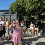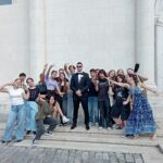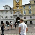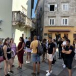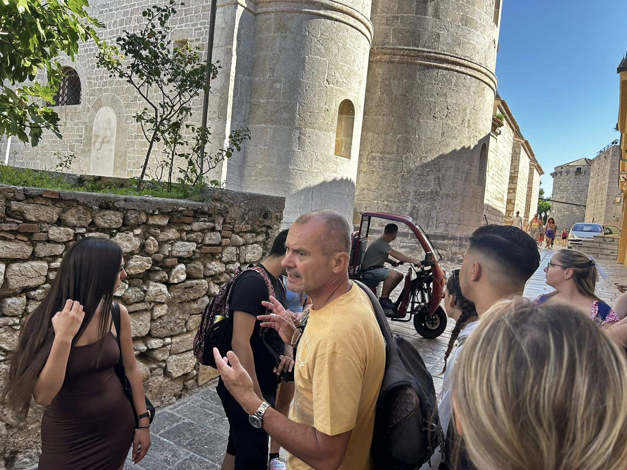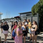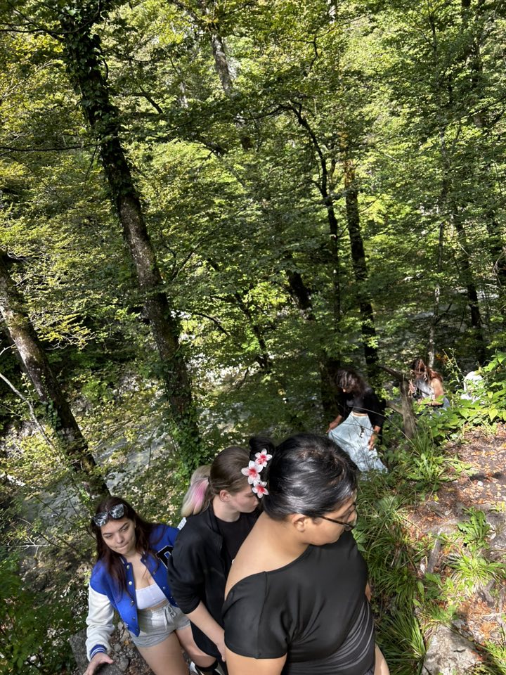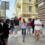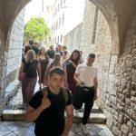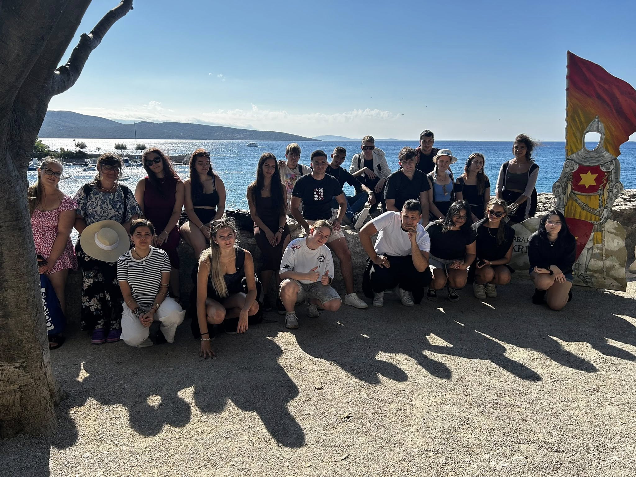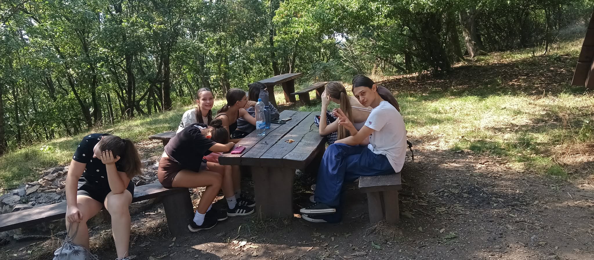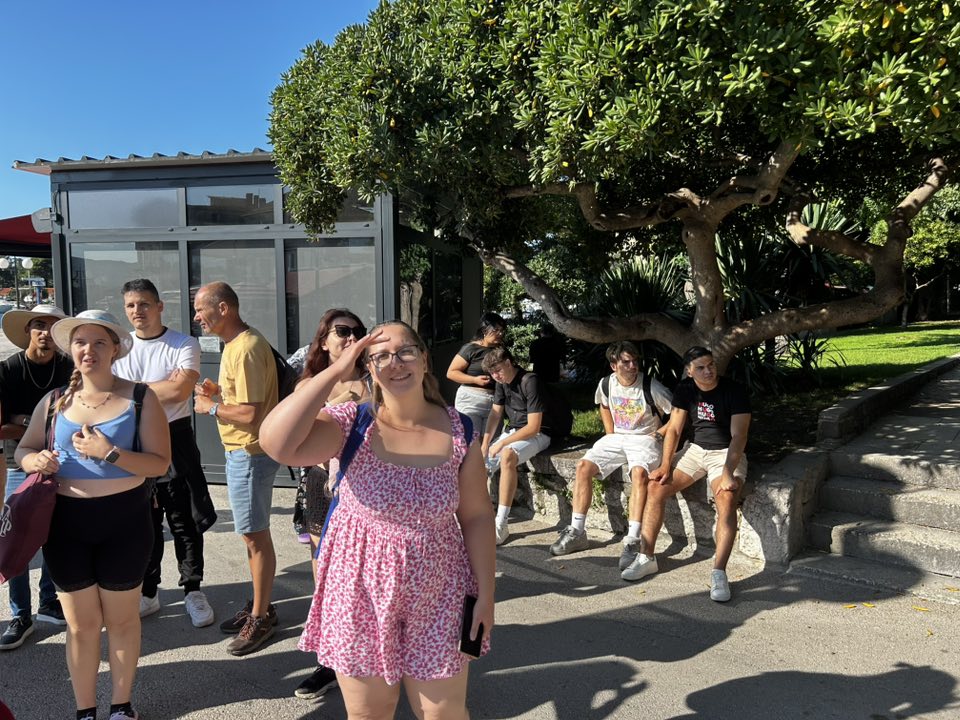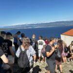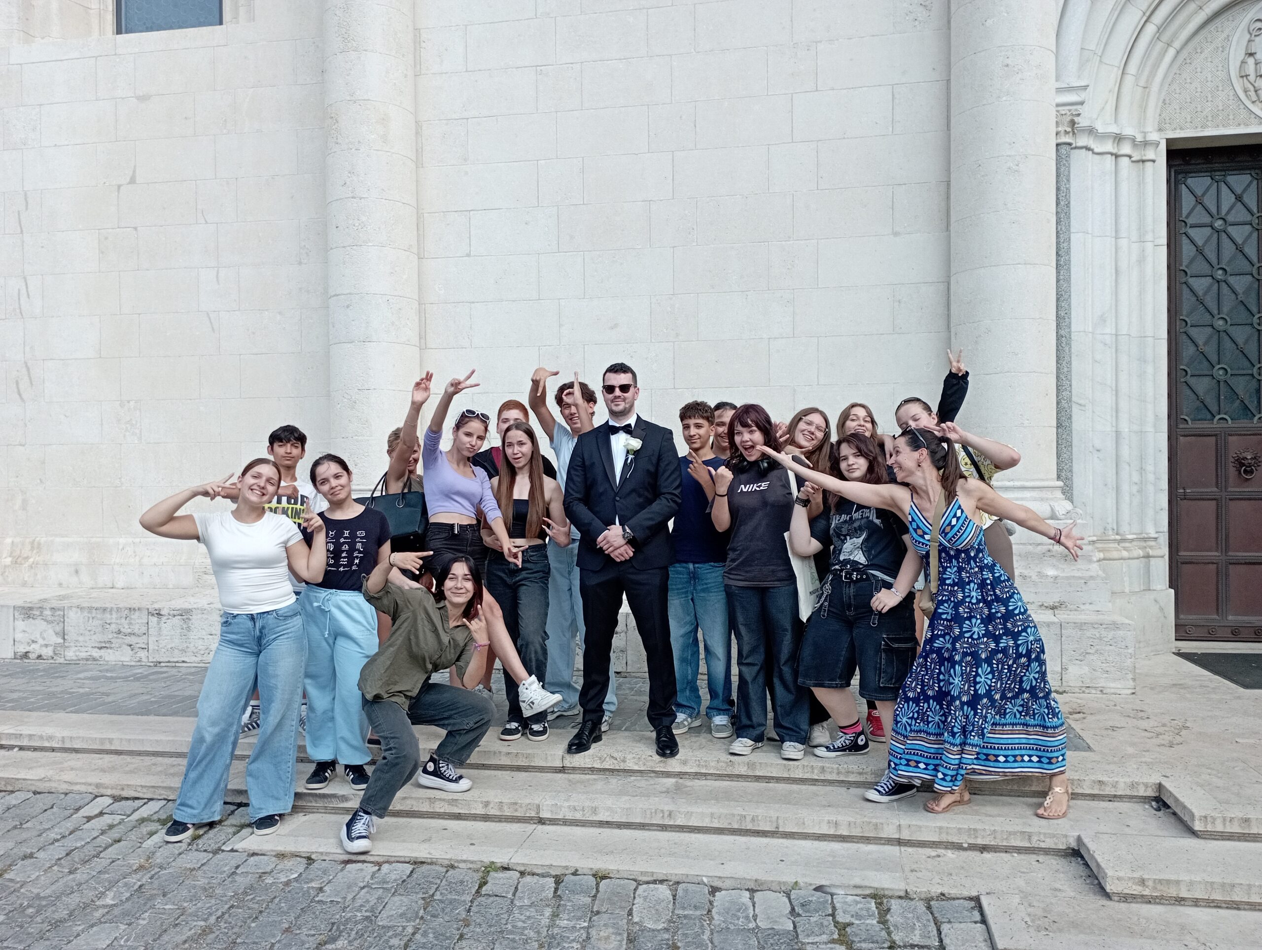 A csoport egy része a második éjszakázás miatt igencsak fáradt volt, ennek ellenére izgalommal várták, hogy megismerhessük Fiumét. Jó kis városi séta után elérkeztünk az alagúthoz, ahova be szerettünk volna jutni, azonban a helyszínen kiderült, hogy kizárólag kártyás fizetés lehetséges, nálunk azonban csak készpénz volt. Kollégám kiváló horvát nyelvtudásával próbálta elérni, hogy hadd mehessünk be az euróinkkal az alagútba, de nem lehetett. Sajnos ezt a programpontot így törölni kellett. A kihagyott program miatt lett a gyerekeknek egy kis szabadidejük, amit mindig nagyon szeretnek. Azonban mi módjával osztogatjuk ezt a külföldi városokban, nehogy eltévedjenek véletlenül. A megbeszélt időpontra mindenki visszaért, és folytattuk a városi sétát. Több száz lépcsőn vezetett fel utunk a középkori Trsat kastélyba. Voltak, akik nagyon ügyesen és gyorsan felértek a lépcsősor tetejére. Én mindig a legutolsókkal maradok, hogy bíztassam őket is és magamat is, hogy már nem sok van hátra. Csodálatos helyszínre érkeztünk, ahol azonnal csoportképet is készítettünk. Mogyorósi Tamás sok érdekességet mesélt a diákoknak, majd mindenki egyenként felfedezhette ezt a különleges várkastélyt. Akik nem voltak fáradtak vagy lusták, felsétáltak a bástyára, ahonnan csodás panoráma tárul az ember szeme elé. A csoport felén ekkor már sajnos azt érzékeltük, hogy inkább pihengetnek a hűs betonpadokon, minthogy valamelyest bejárnák és felfedeznék a helyszínt. A megbeszélt időpontban a bejárathoz érkezett mindenki, és indultunk fagyizni. Mindenki választhatott magának, melyik ízből kéri a fejenkénti két gombócot. Igazán jólesett a koraőszi melegben is az isteni hideg fagylalt. Ezután felszálltunk buszunkra, és megkezdtük a hazautazást.
