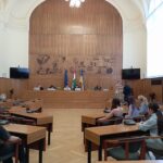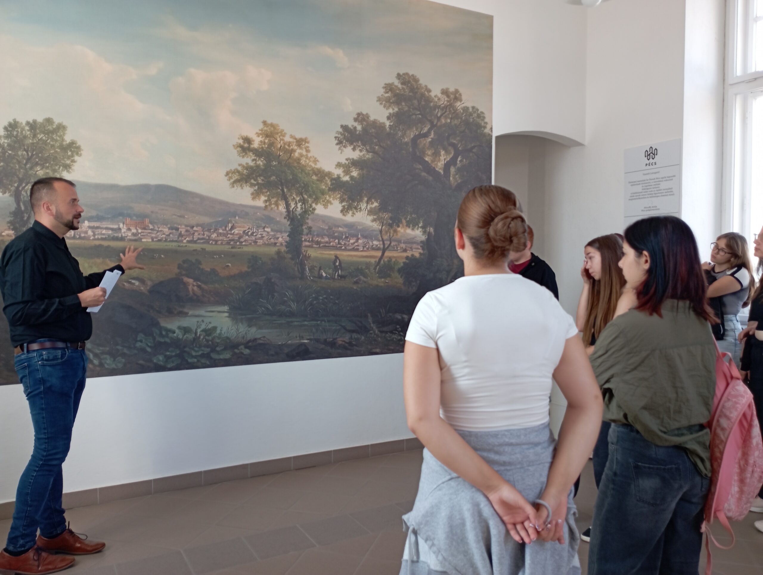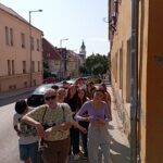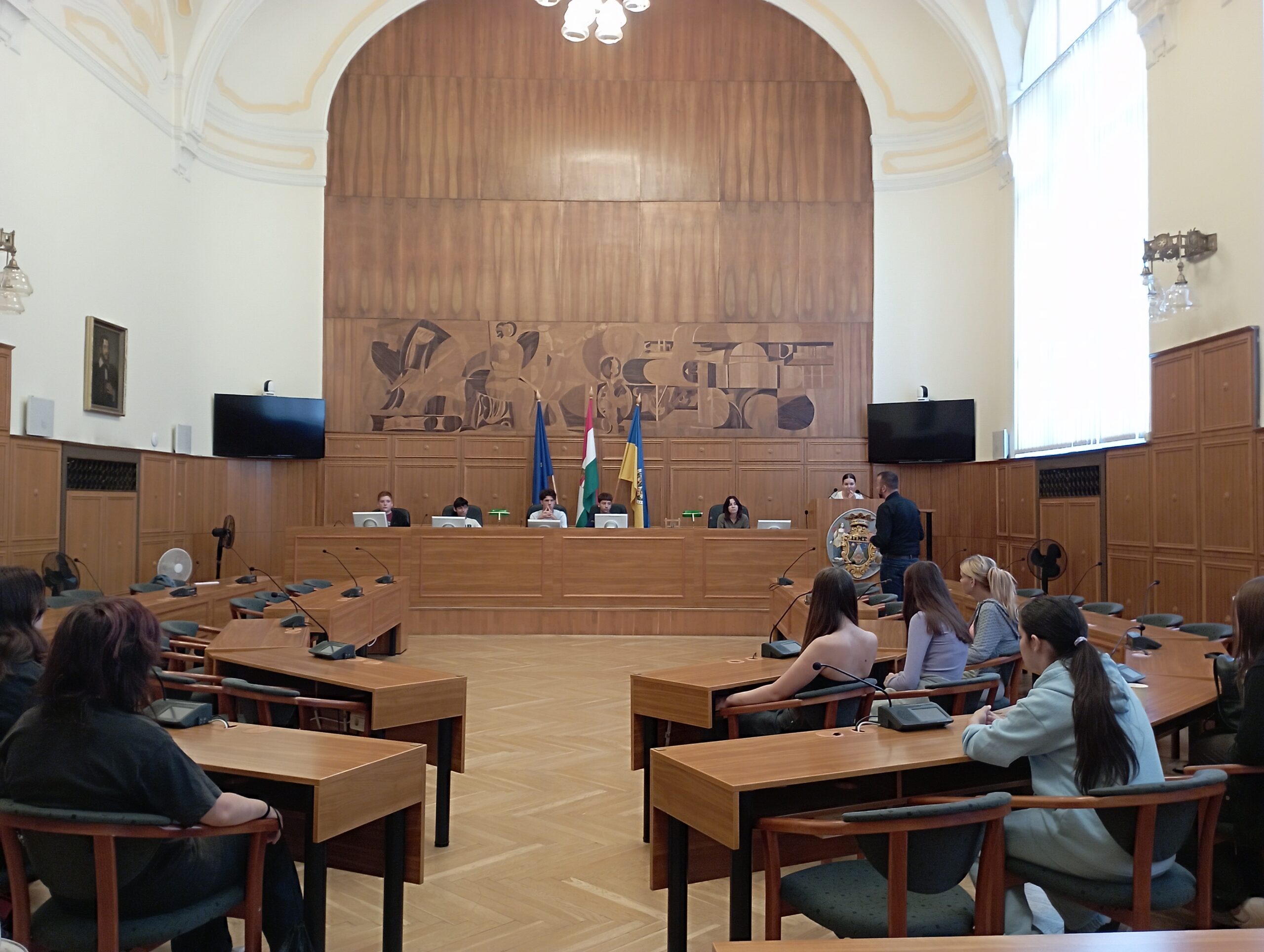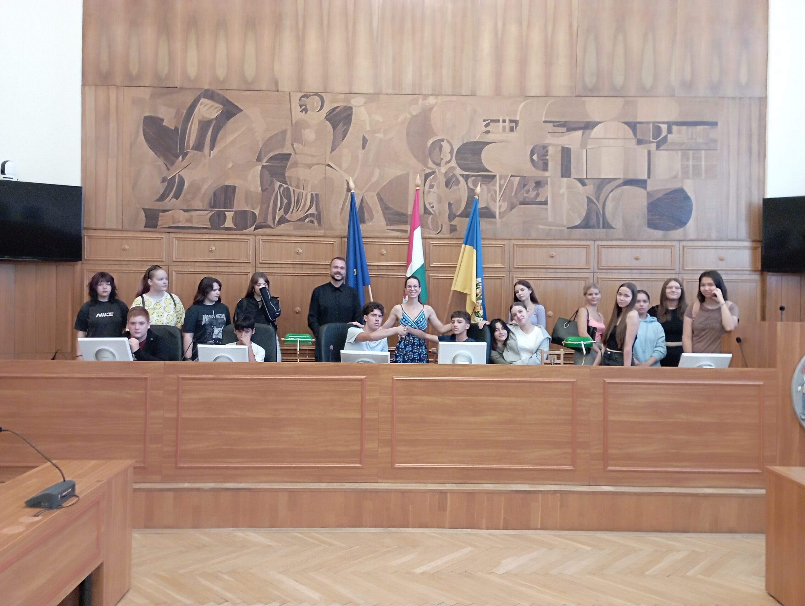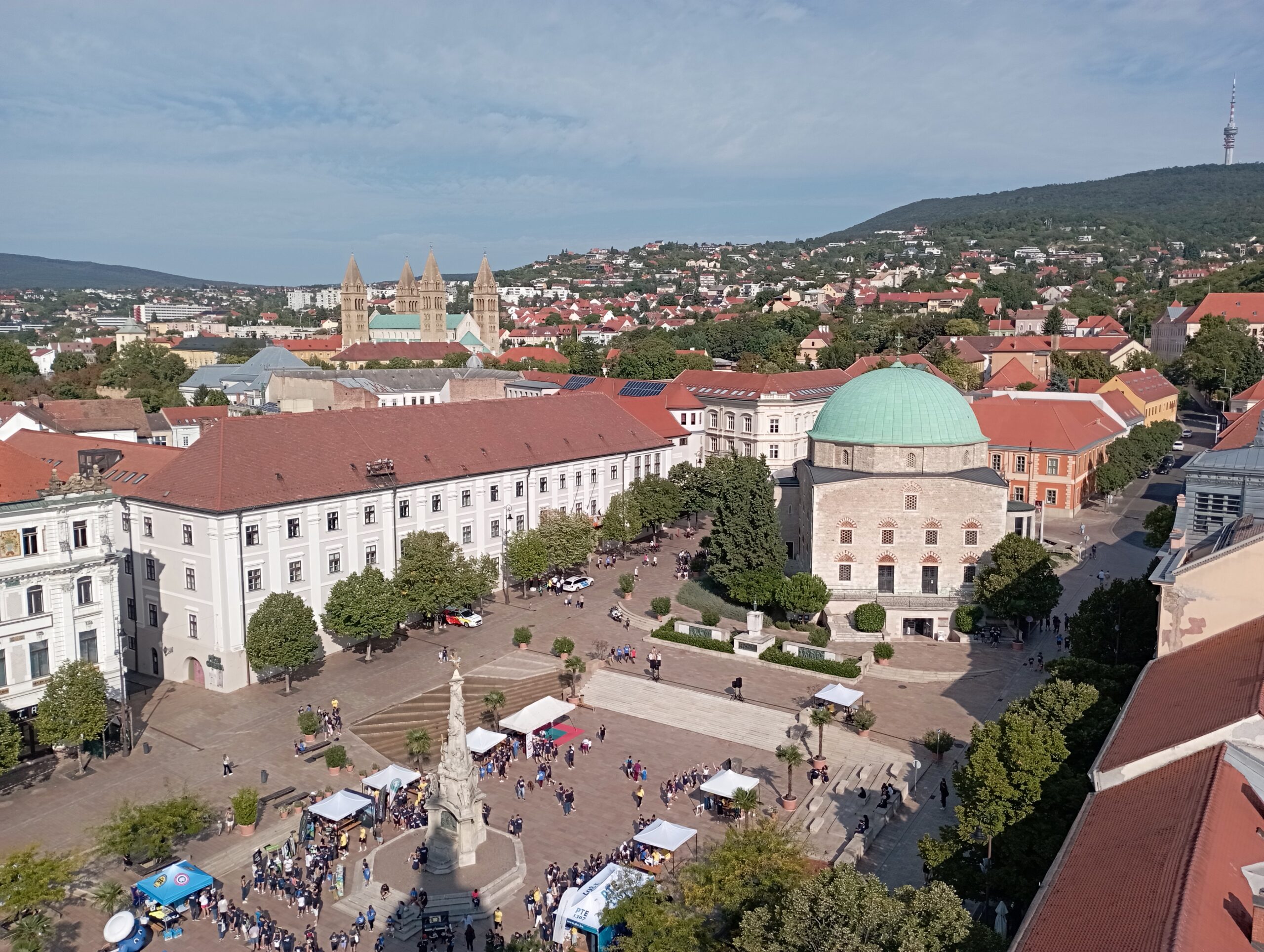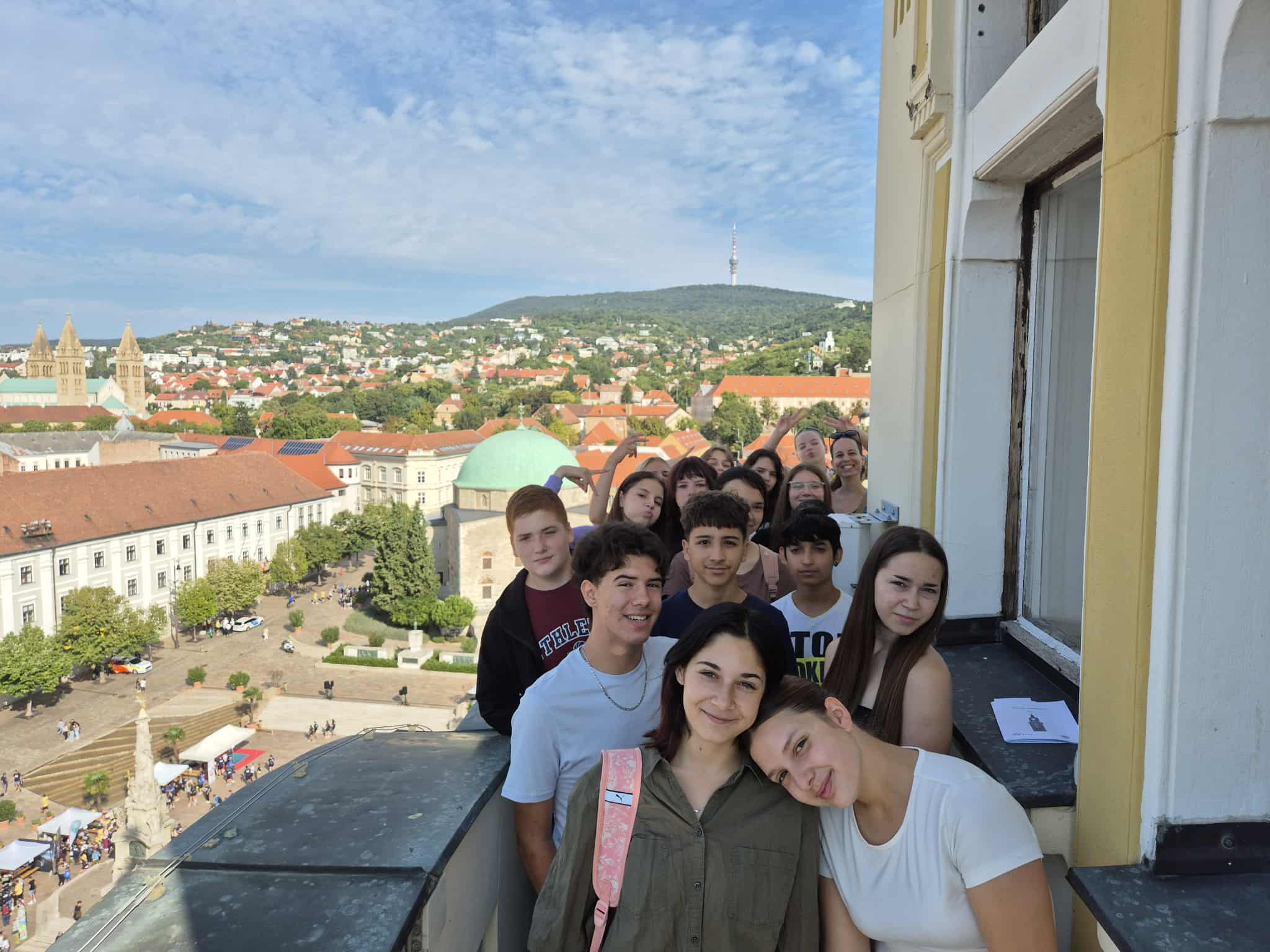 A reggelit követően első utunk Pécs Városháza Torony Kiállítására vezetett, ahol Zag Gábor, Pécs alpolgármestere, már várt minket. Előadásában az épület és a torony történetét, a belvárost meghatározó épületek átalakulását ismerhettük meg, valamint a panorámateraszról megcsodálhattuk Pécs jelenlegi utcaképét. Lehetőségünk volt leülni a pécsi városi vezetők és képviselők helyére is, és azt is megtudtuk, hogy zajlik egy-egy képviselőtestületi ülés.