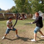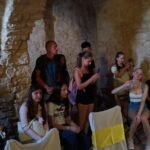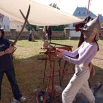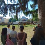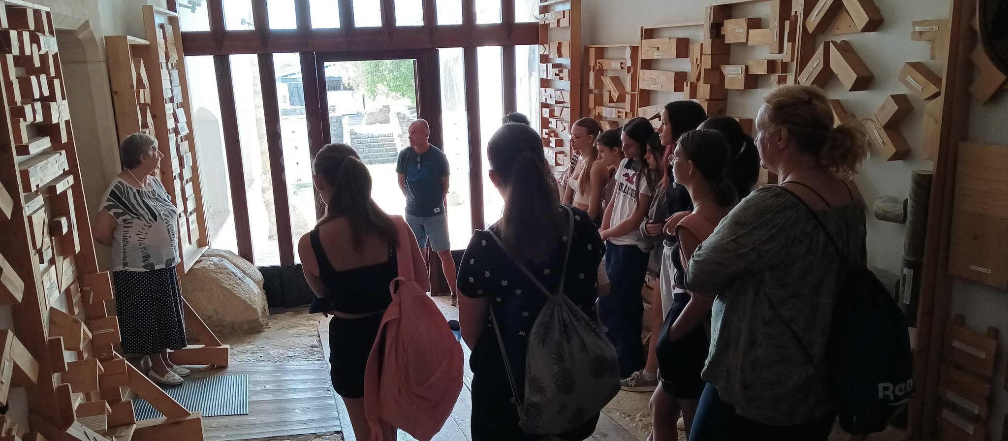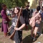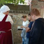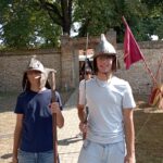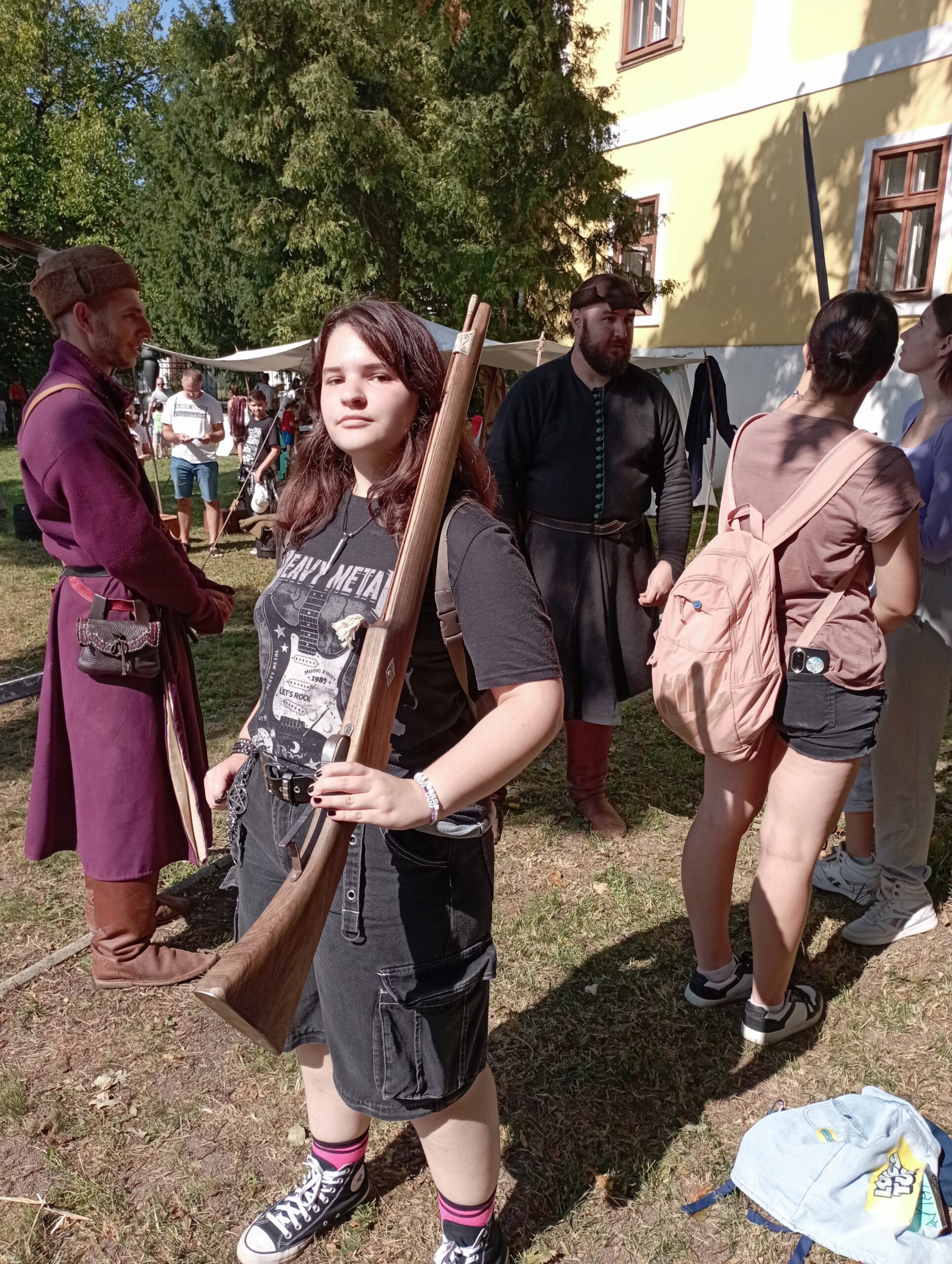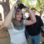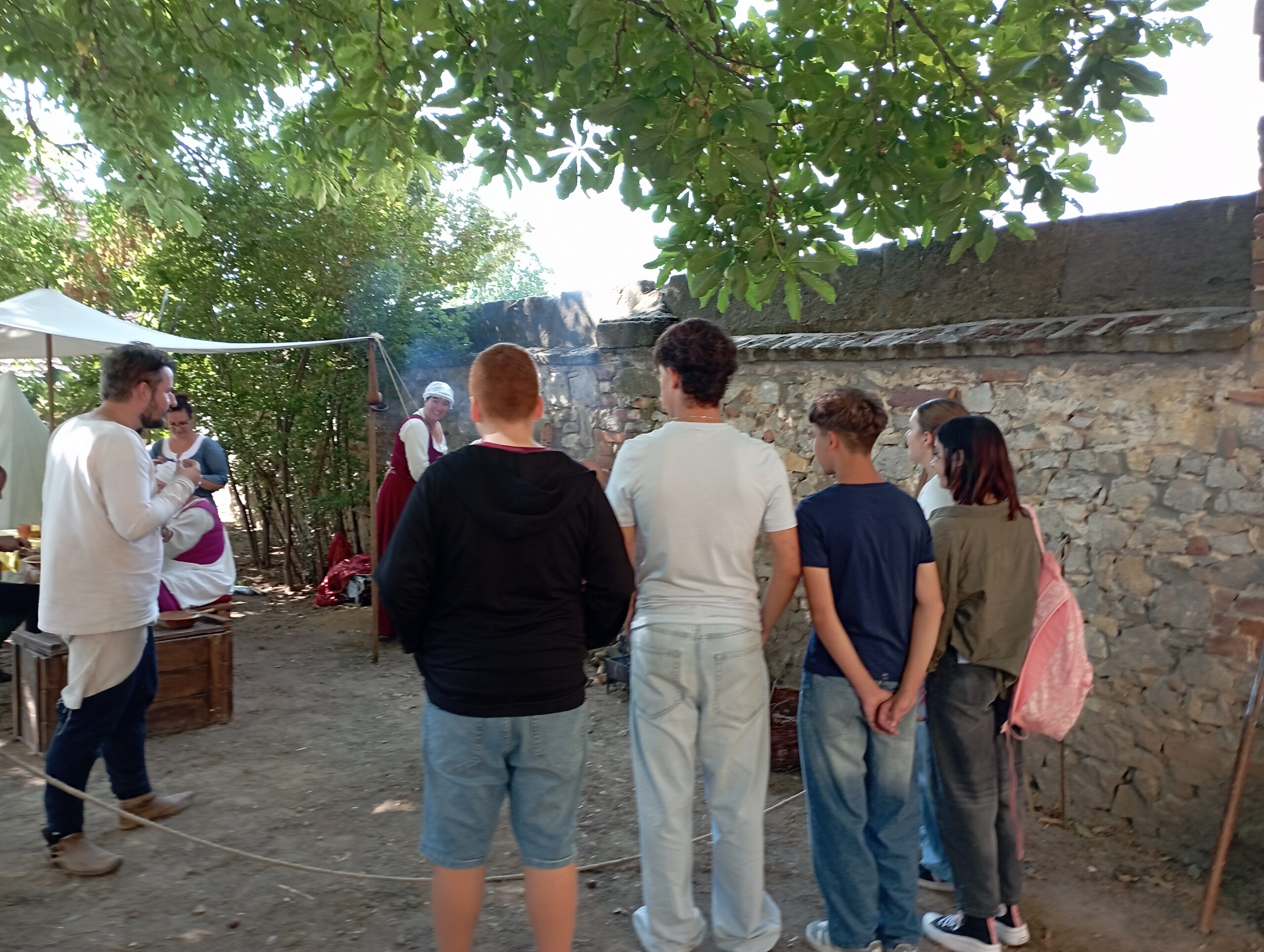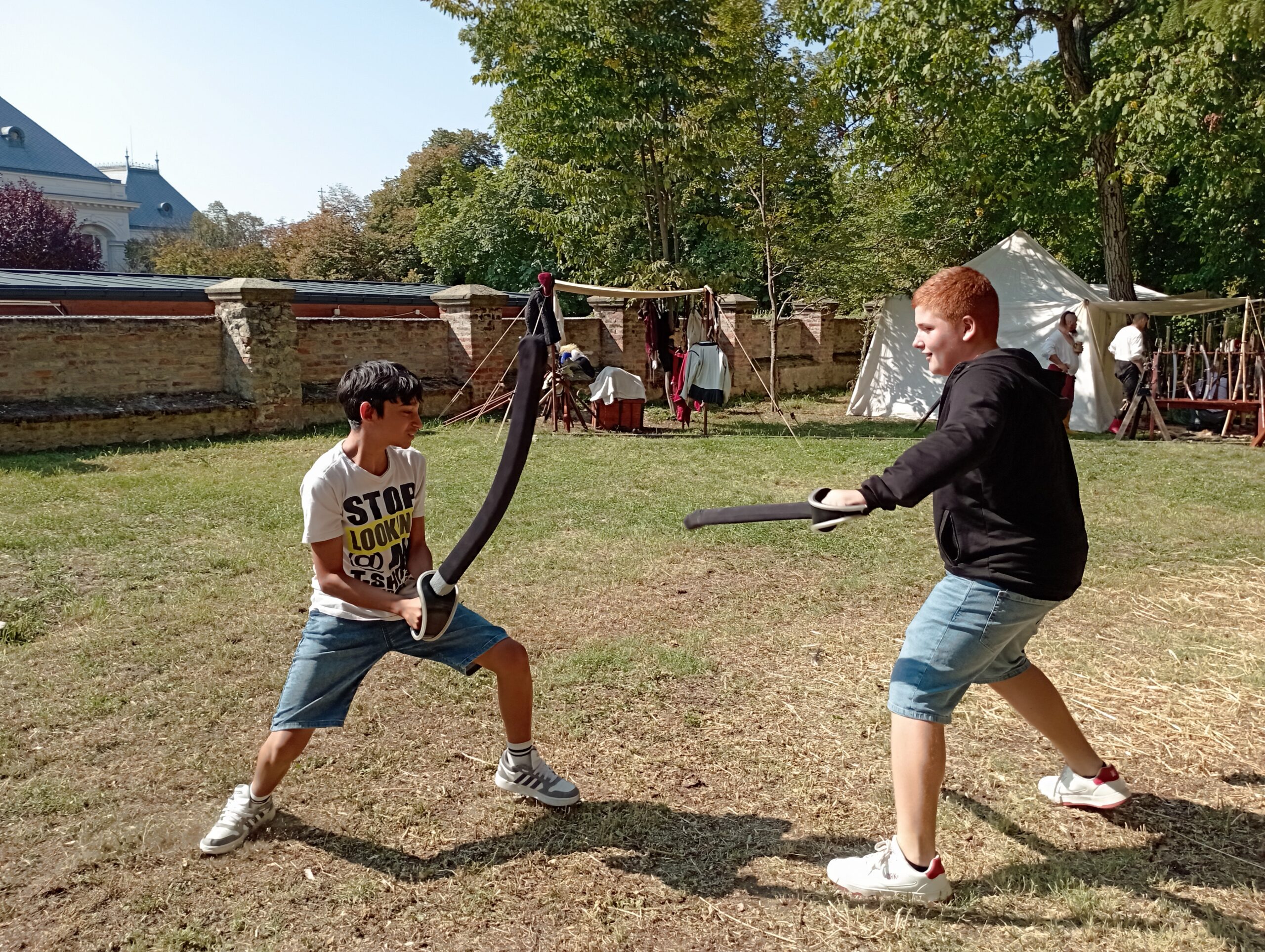 A megbeszélt találkozó helyre mindenki pontosan érkezett, majd utunk a Káptalan utcában lévő Janus Pannonius Múzeum Históriás udvara felé vezetett, ahol megelevenedett a középkori Pécs a Kereszt és félhold nevű rendezvényen. Megismerhettük a kor fegyvereit, viseleteit, a mindennapi élet eszközeit, és egy fegyverbemutatót is láthattunk.