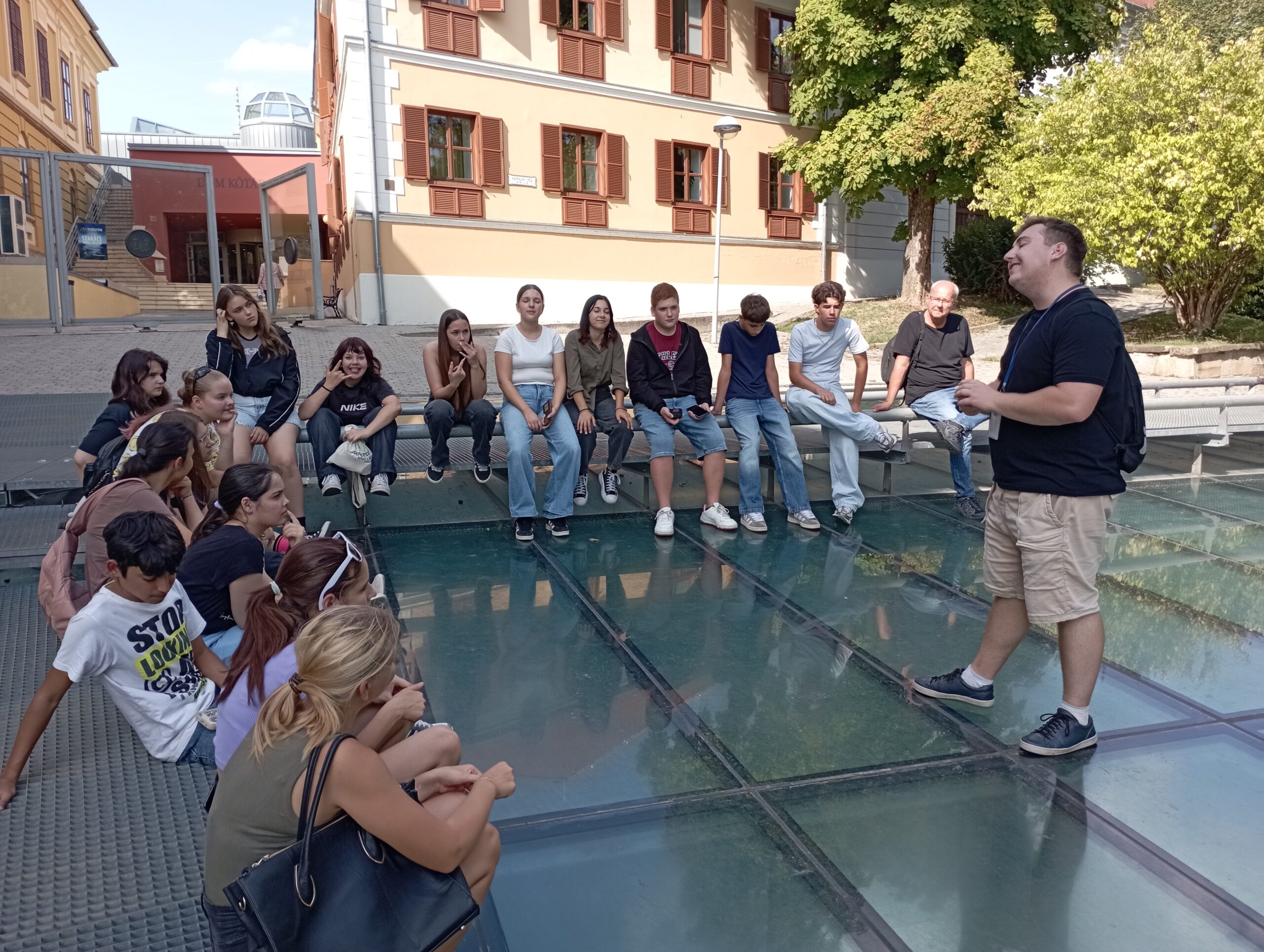 Az iskola után a délutáni órákban a csoport kisétált a Zsolnay negyedben található Planetáriumhoz.