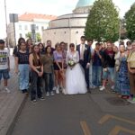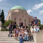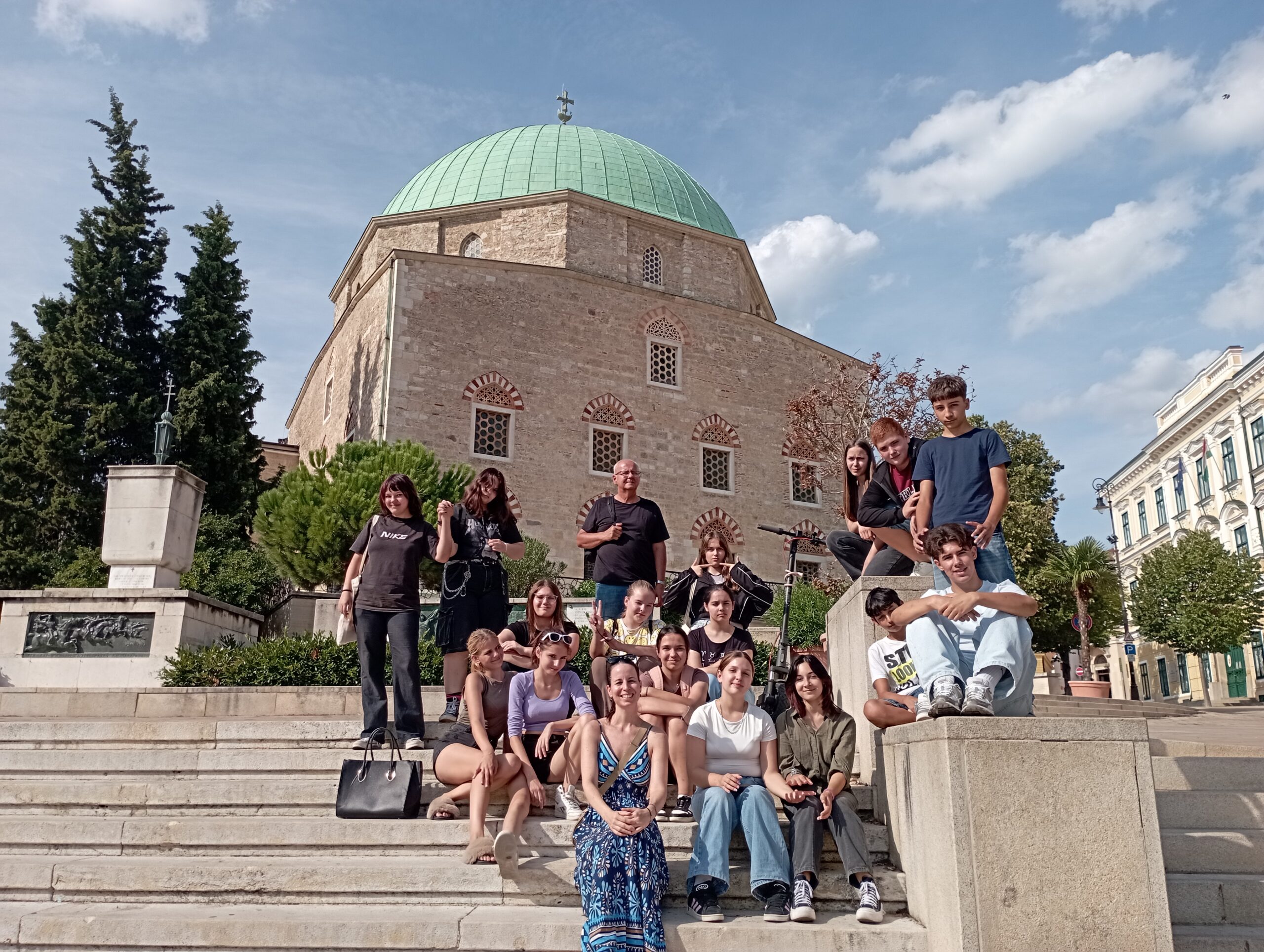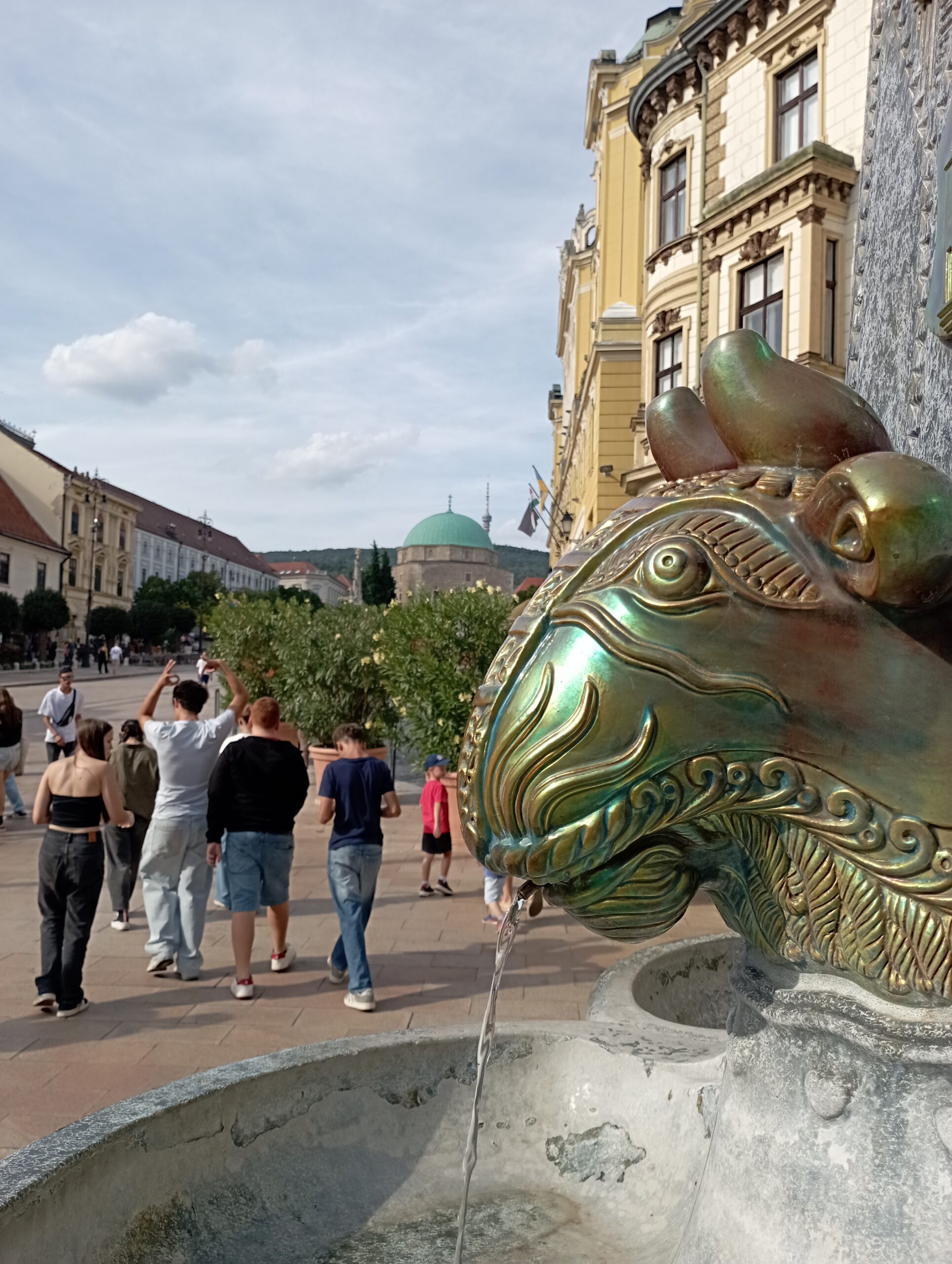 Ezt követően a kollégium felé vettük az irányt, ahol elfogyasztottuk az ebédet, majd rövid pihenőt követően folytattuk Pécs városának felfedezését. Idegenvezetőnkkel a Barbakánnál találkoztunk, és innen vette kezdetét a két órás belvárosi sétánk. Érdekes történeteket hallottunk a Barbakánról, a Székesegyházról, Cella Septichoráról, a szerelmesek lakatfaláról, Széchényi térről, Gázi Kászim pasa dzsámijáról, amely napjainkban római katolikus templomként üzemel, az ökörfejes Zsolnay-kútról, a Tüke-kútról, a Postapalotáról, és a Jókai térről. Sétánk során két esküvői násznéppel is találkoztunk, a gyerekek legnagyobb örömére. Belvárosi sétánk utolsó állomásaként megcsodáltuk a Kórház téren álló Jakováli Hasszán Pasa Dzsámiját, amely Magyarország egyik legjobb állapotában fennmaradt török építészeti emléke, az egyetlen, amelynél a dzsámi és a hozzá csatlakozó minaret majdnem változatlanul megmaradt.