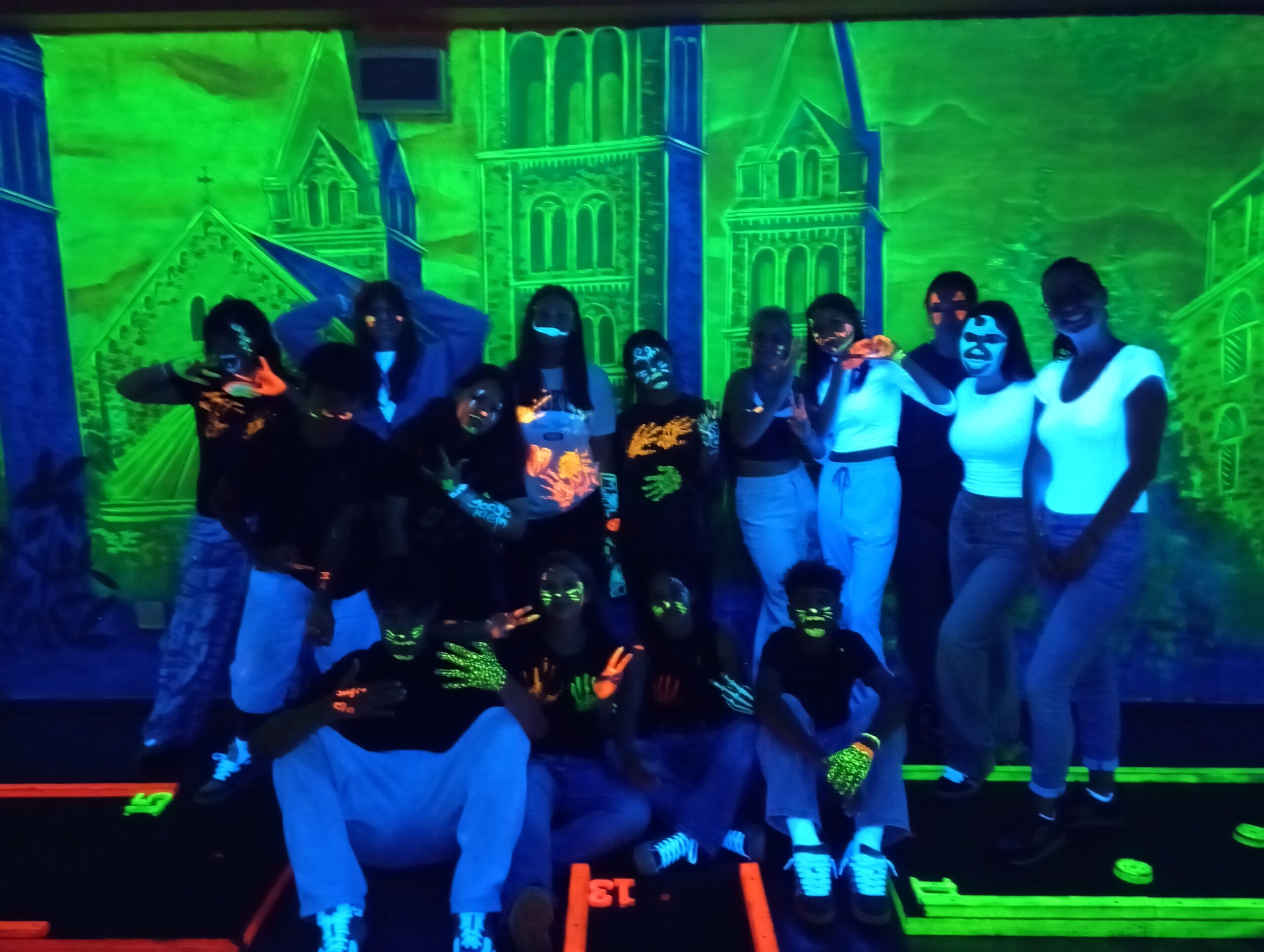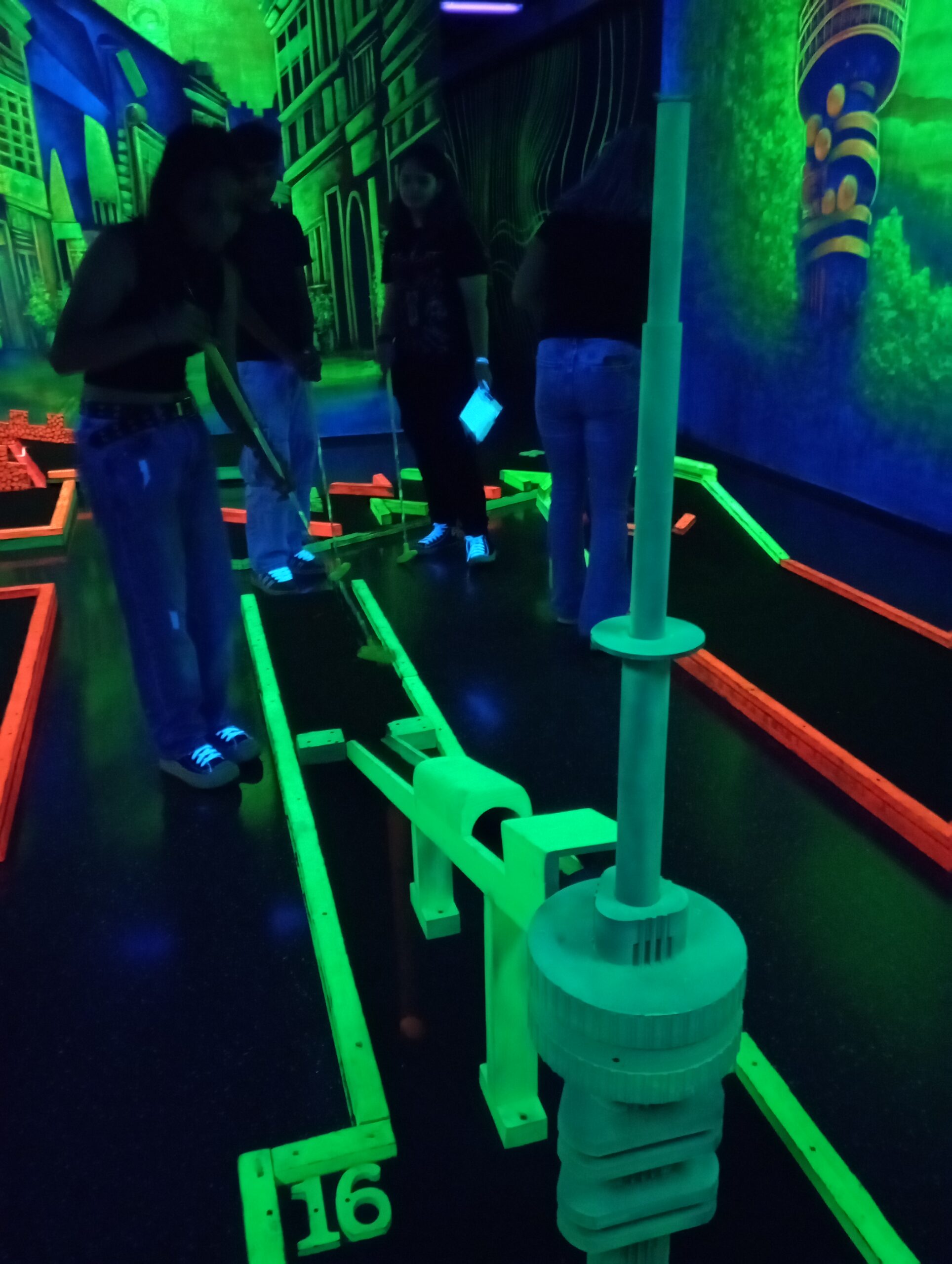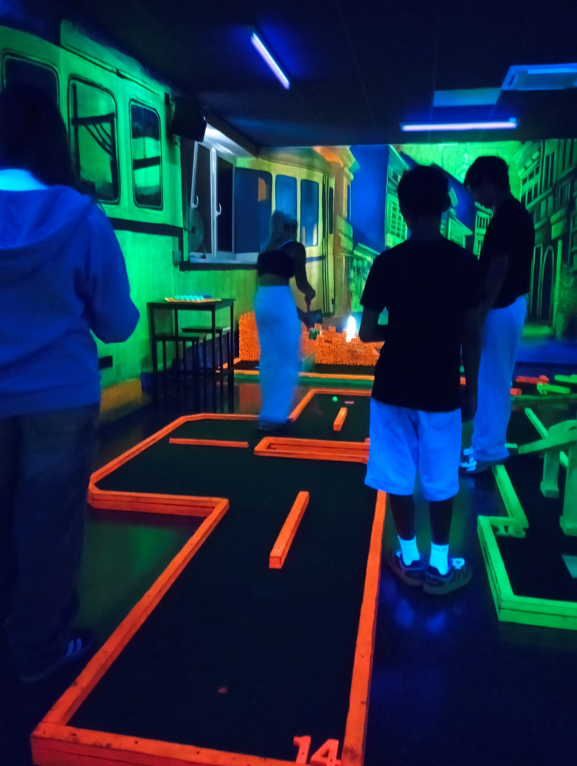 Vasárnap a mozgásé volt a főszerep. Délelőtti programunk az UV Birodalom volt, ahol Pécs nevezetességeit Minigolf pálya részeként is kipróbálhattuk. Nagy sikere volt az UV arcfestékeknek, amelynek köszönhetően arcon, kézen, ruhákon is megjelentek a különböző színek. Emellett számos UV fényben látszó játékokat is kipróbálhattak a fiatalok. Ilyen volt az óriás Jenga, kiszsák dobálás, dominó, amőba, és a különböző ügyességi játékok. A két órás, jó hangulatú program hamar eltelt.