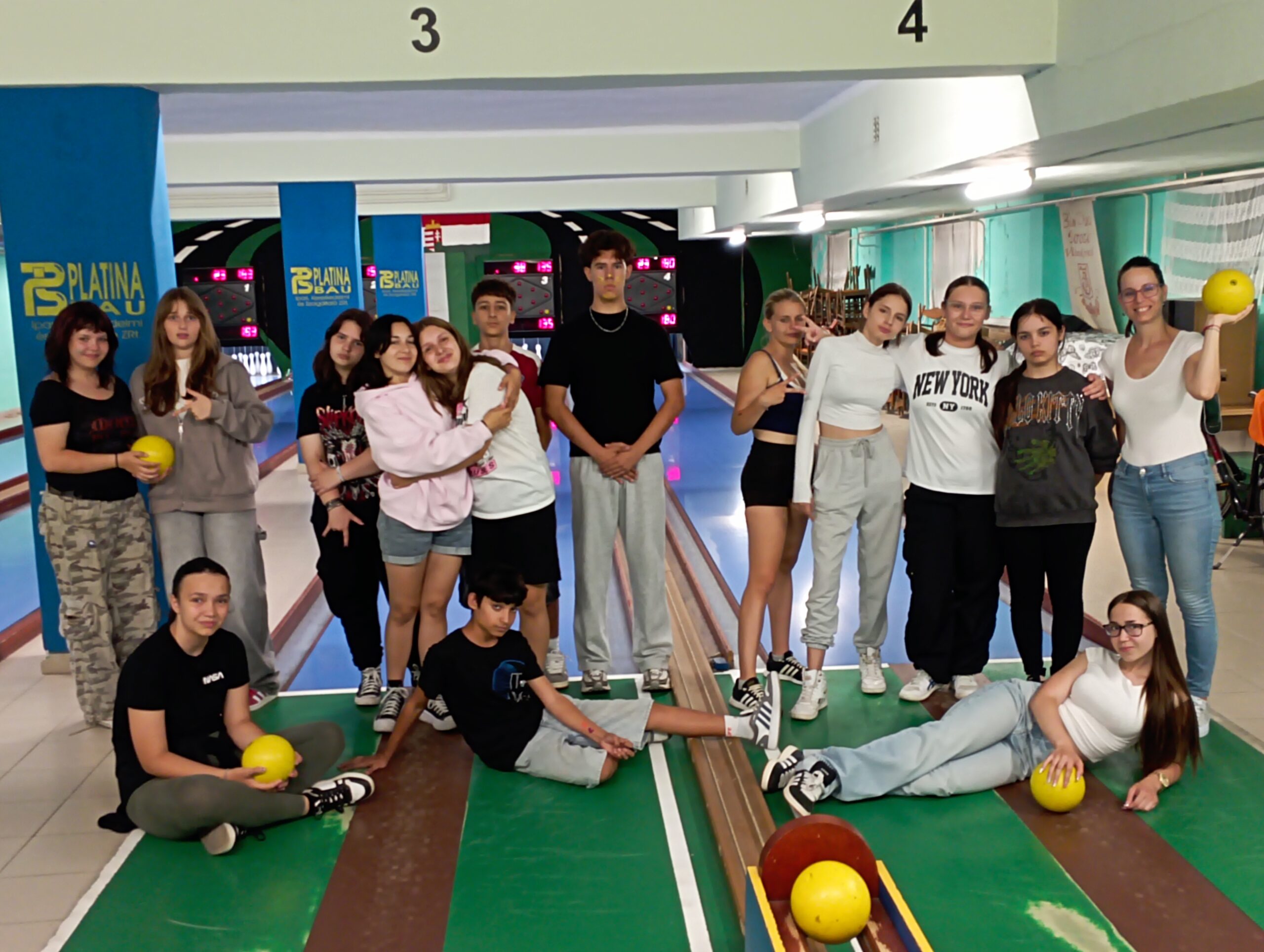 A kollégiumi ebédet és pihenőt követően a délutánt a Pécsi Teke Sportegyesület teke pályáin töltöttük. A gyerekek élvezték a tekézést, de nagyon elfáradtak. Több diáktól is azt a visszajelzést kaptam, hogy ugyan elsőre próbálták ki ezt a sportot, és volt ugyan 0 pontos gurításuk is, de ide még szeretnének visszajönni.