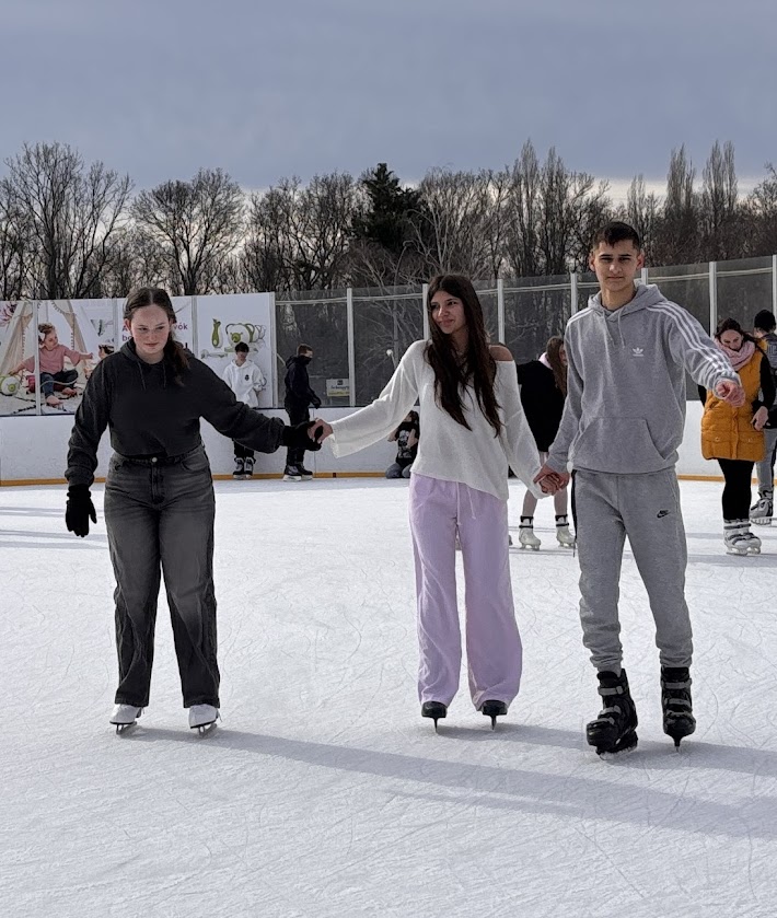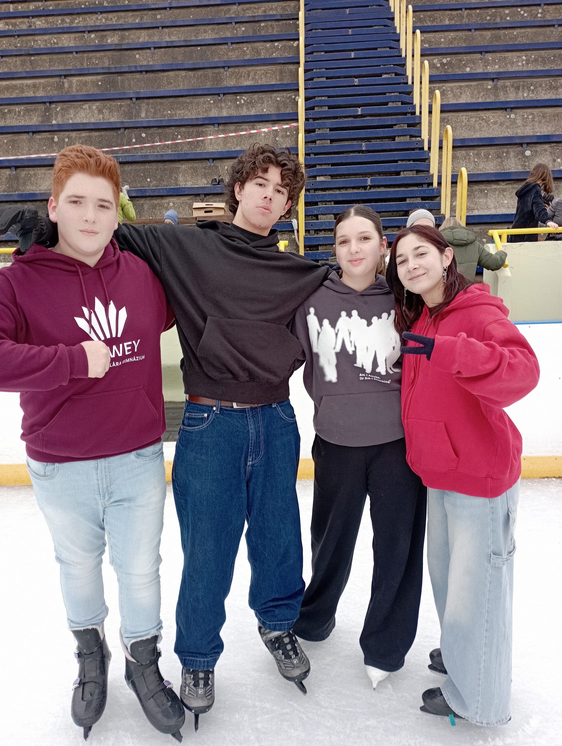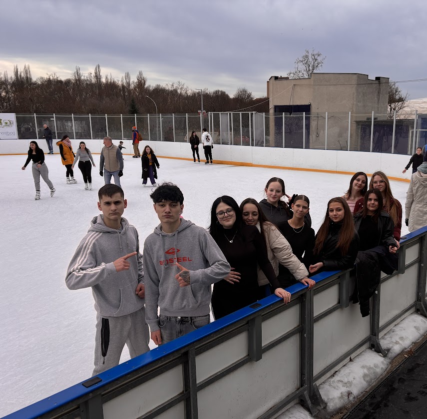 A kollégiumban elfogyasztott reggelink után a Pécsi Műjégpályára látogattunk el. Ezt a programot a diákok kérése alapján szerveztem meg, ugyanis a tavalyi év során javaslataikban megfogalmazták a korcsolyázásra való igényüket. Az elmúlt tanévben már ellátogattunk a koripályára, ahol kiderült, hogy a csoportból többen is nagyon jól tudnak siklani a jégen.