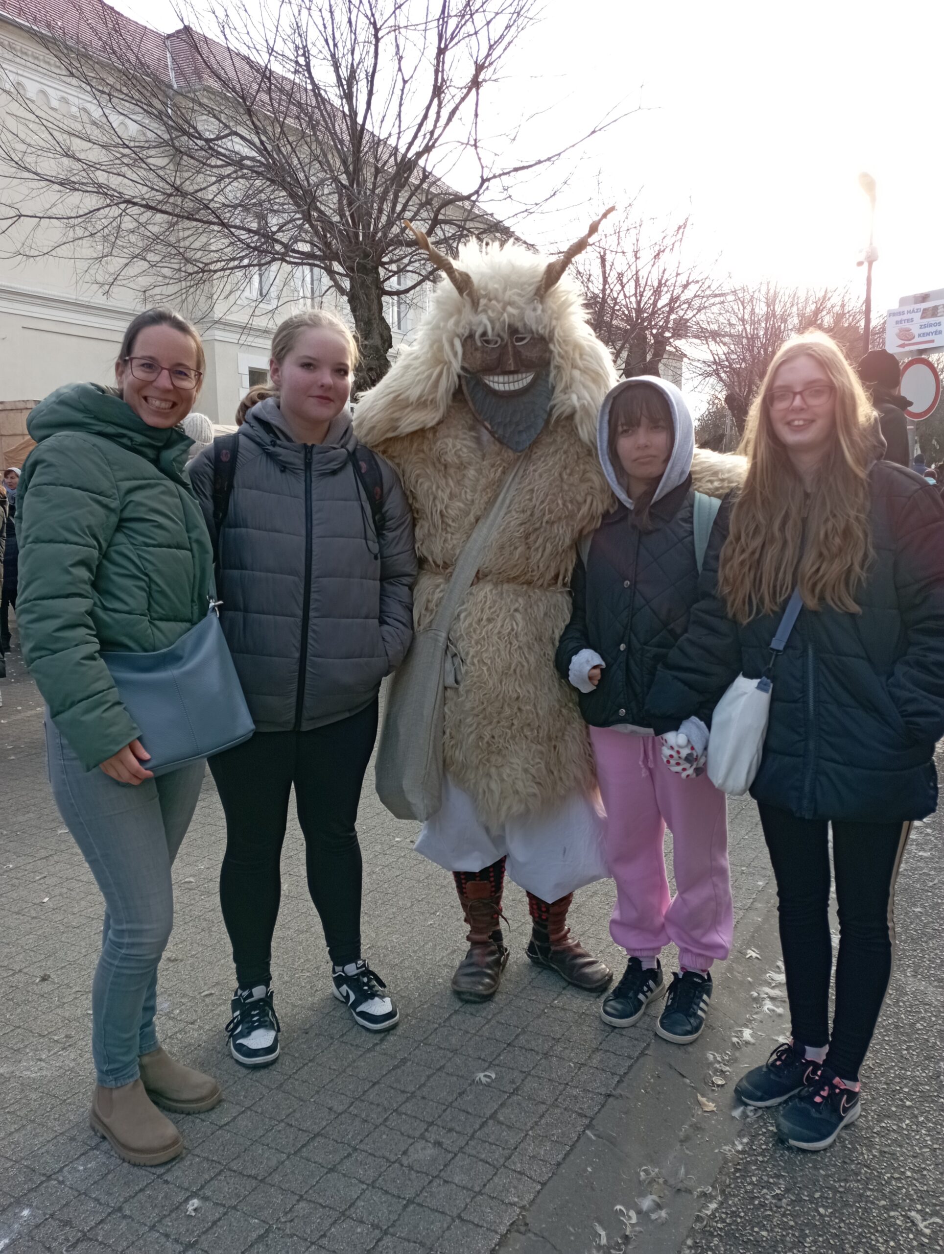 A délelőttöt nagytakarítással és tanulással töltöttük, s aggódva figyeltünk a meglehetősen zordra fordult időjárást, a viharos széllel járó havasesőt. Az ebéd elfogyasztása után külön busszal és az alsóbb évfolyammal együtt indultunk Mohácsra. Az havazás elállt, a szél is mérséklődött. A programot a Kanizsai Dorottya Múzeumban kezdtük, ahol a diákok megismerkedhettek a térség és a busójárás jellegzetességeivel.