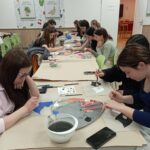 A szombati meleg időjárás miatt, felcseréltük az aznapi programjainkat. Délelőtt a Pécsi Műjégpályára mentünk korcsolyázni a 9. csoporttal közösen, délután pedig a kollégiumi farsangra hangolódva, farsangi maszkokat készítettünk.