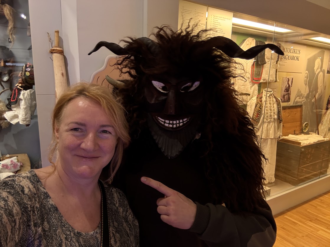A múzeumban több interaktív rész is volt, ujjat lehetett húzni egy búsóval, ki lehetett próbálni a kereplőt, és régi fényképezőképpel fotót is lehetett készíteni.